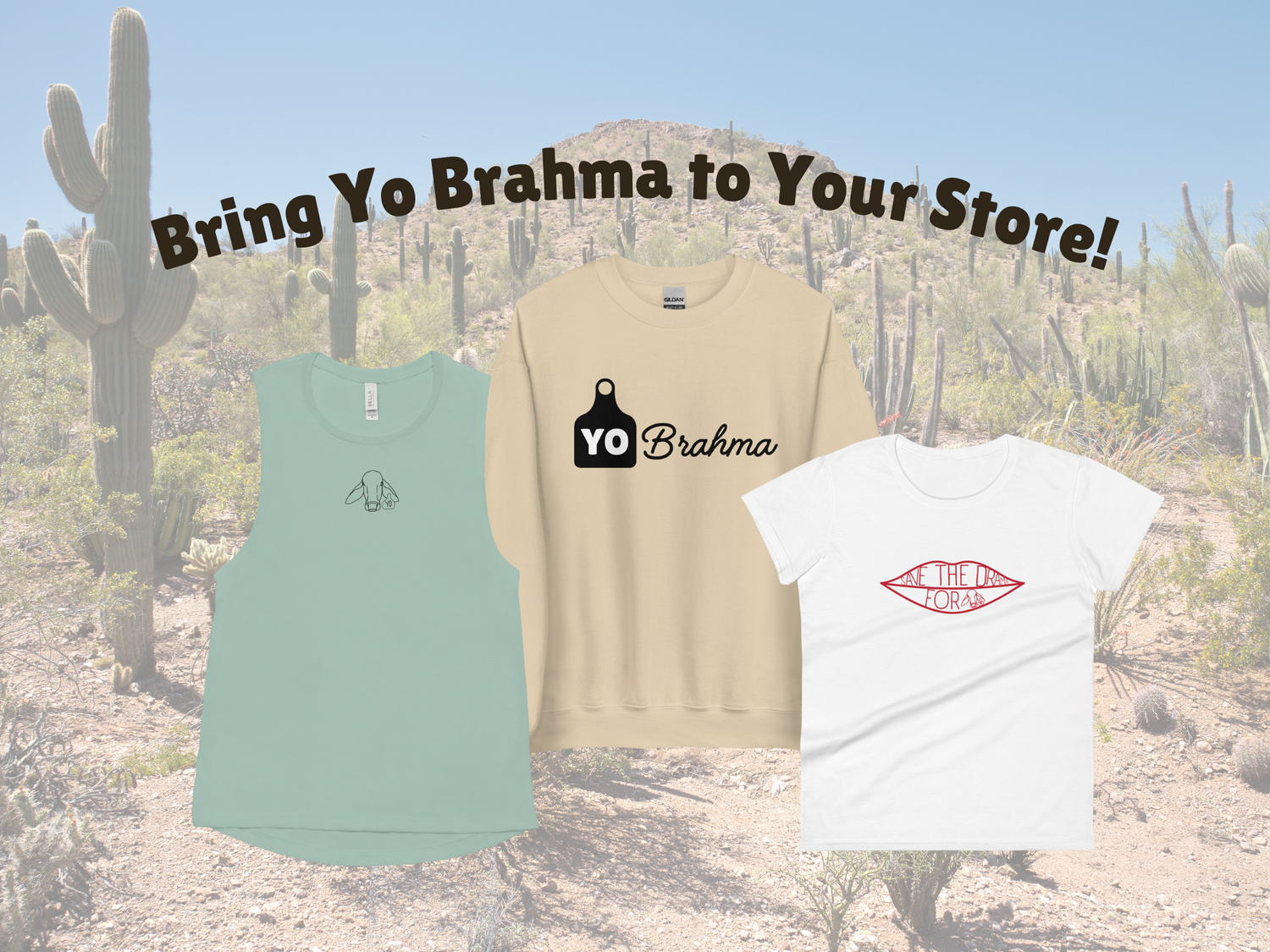 We are happy to provide wholesale opportunities for retailers which includes discounted merchandise and exclusive access to designs that are not available in the Yo Brahma shop. Please email us at yobrahmashop@gmail.com to get our pricing sheet and for a current list of products not found in the store.